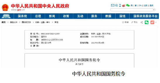 《保障中小企业款项支付条例》(中华人民共和国国务院令第728号)正式发布,自2020年9月1日起施行。